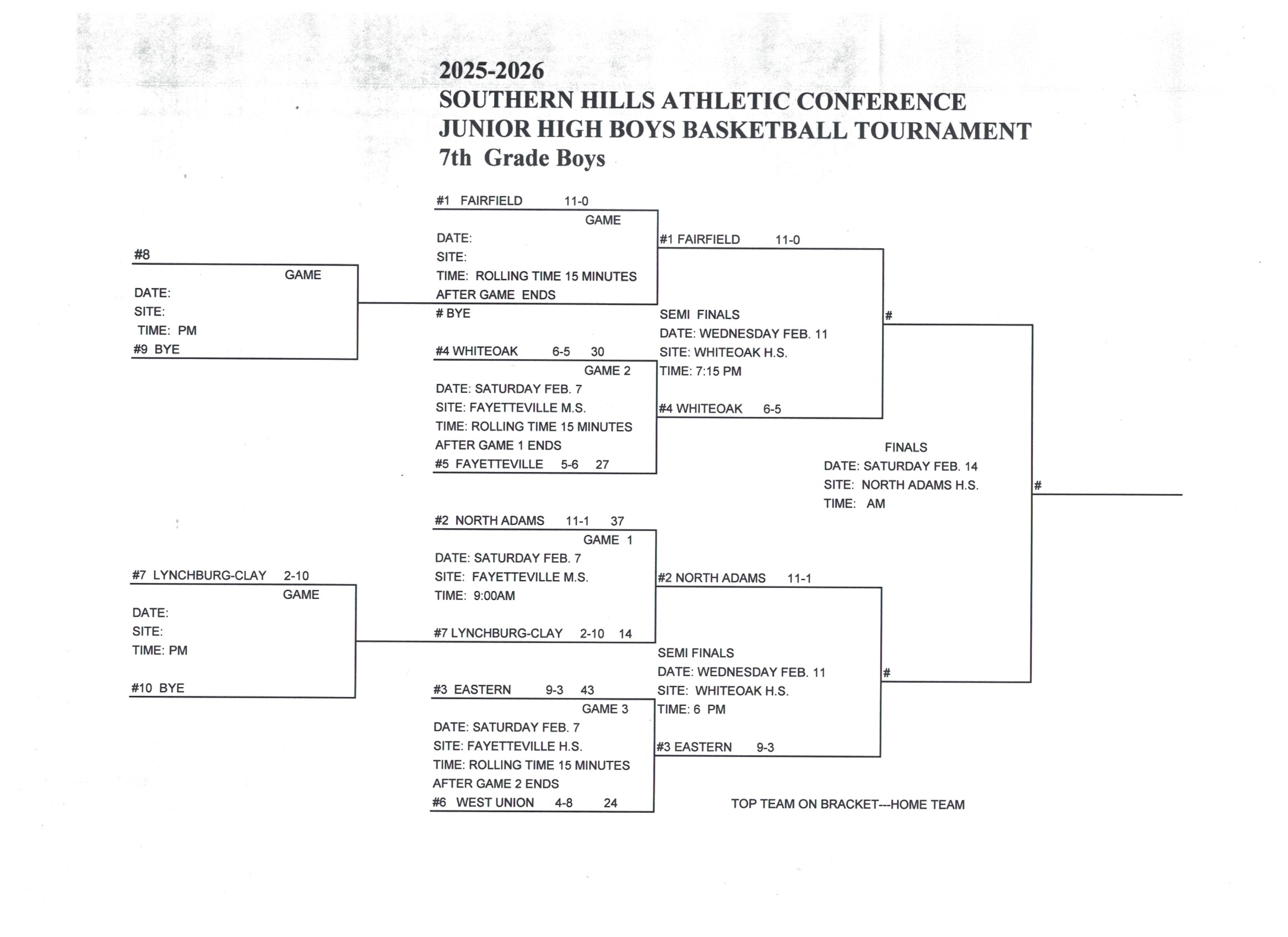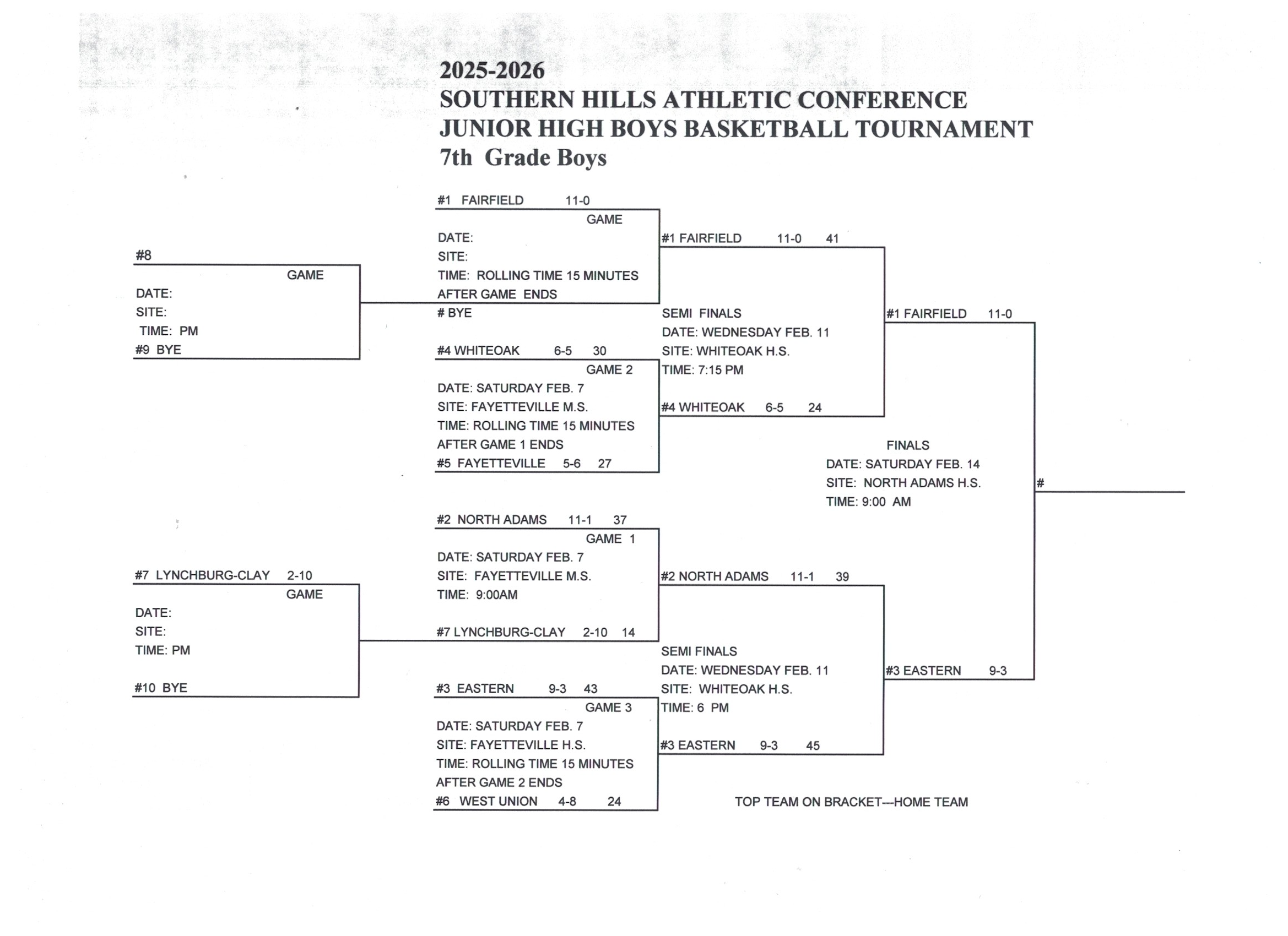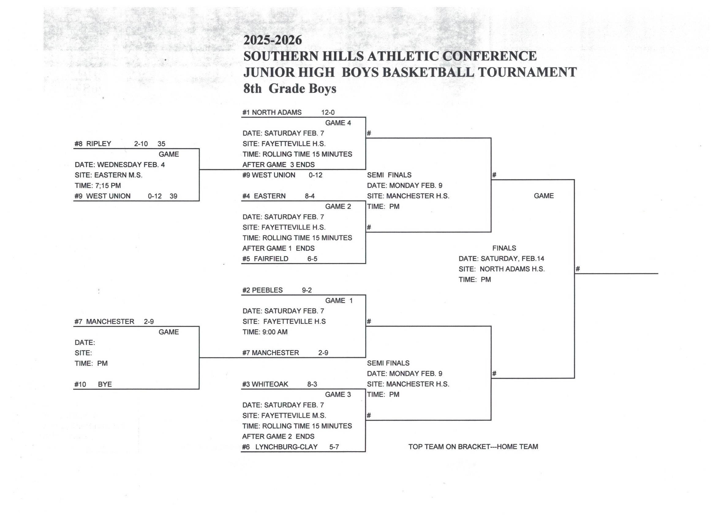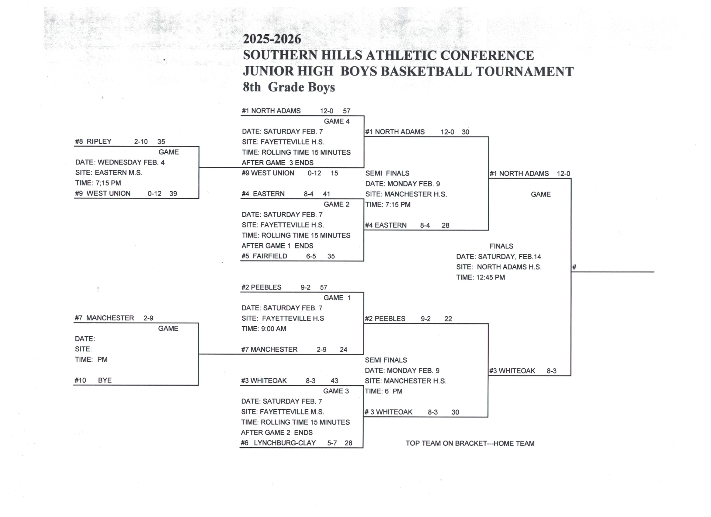 Junior High Boys Basketball Tournament brackets and Results