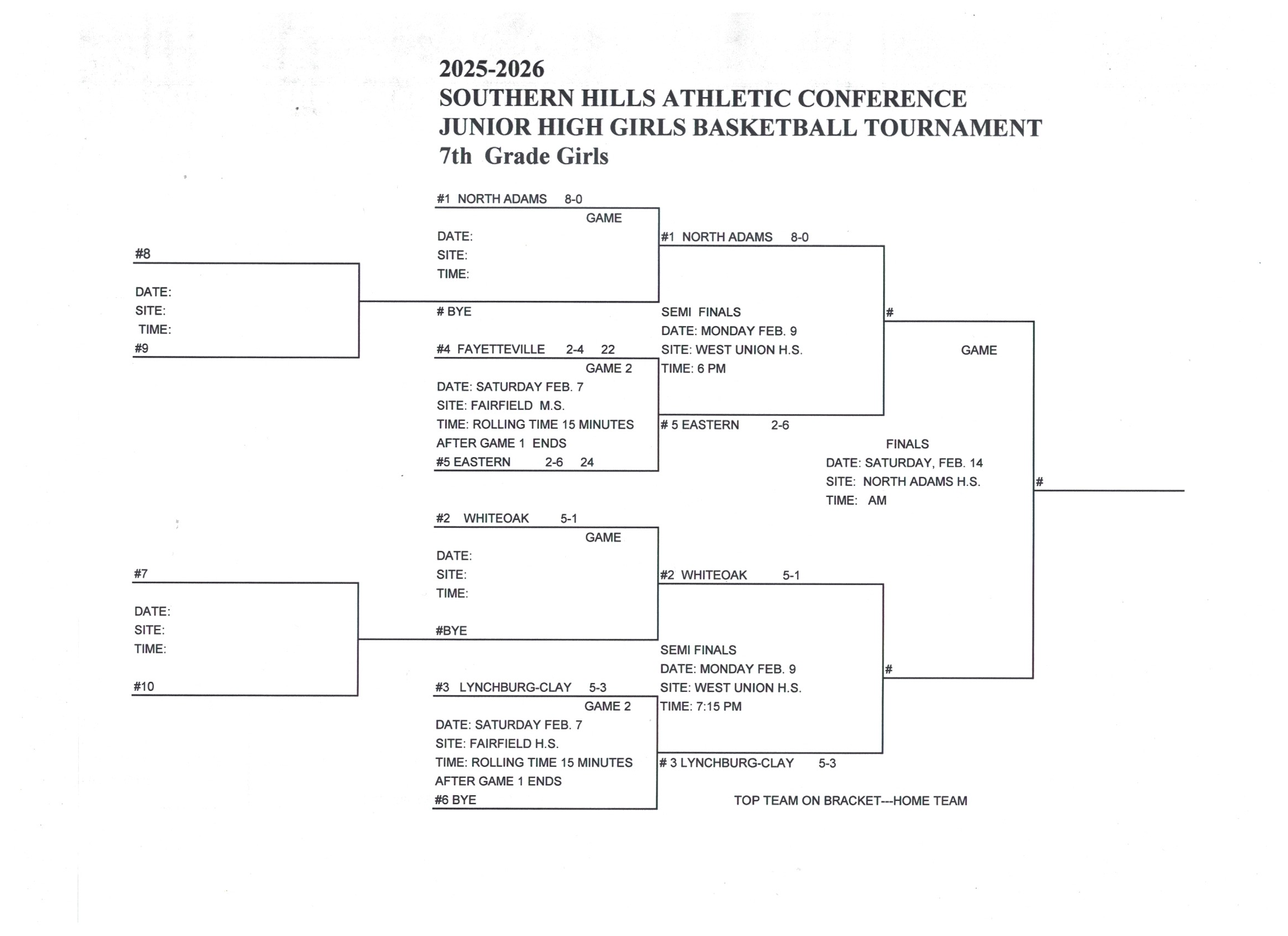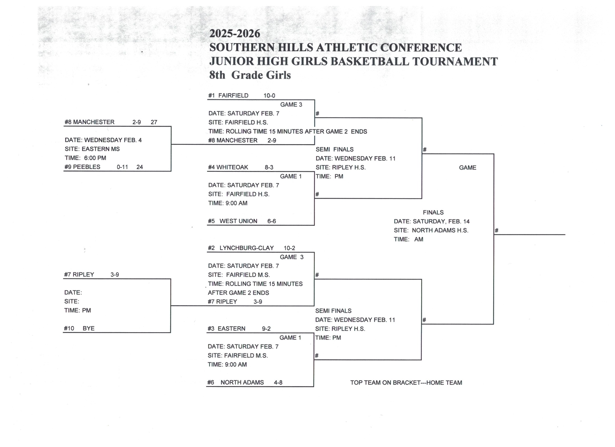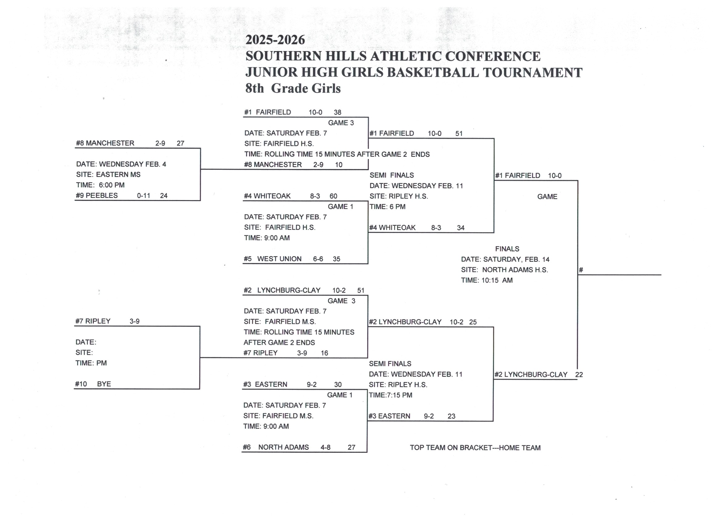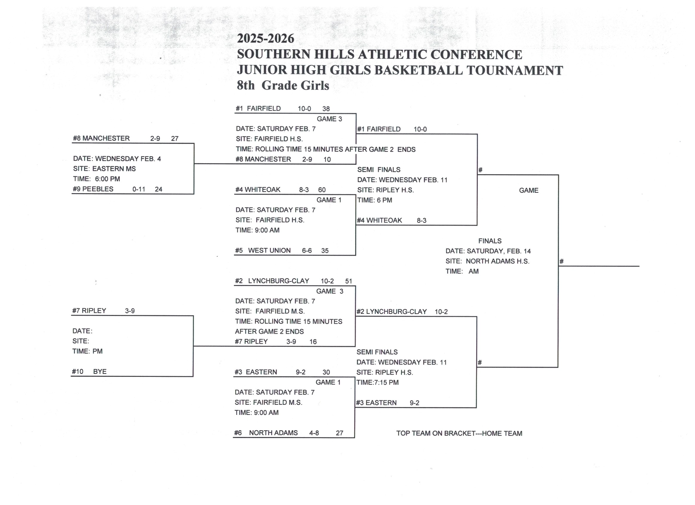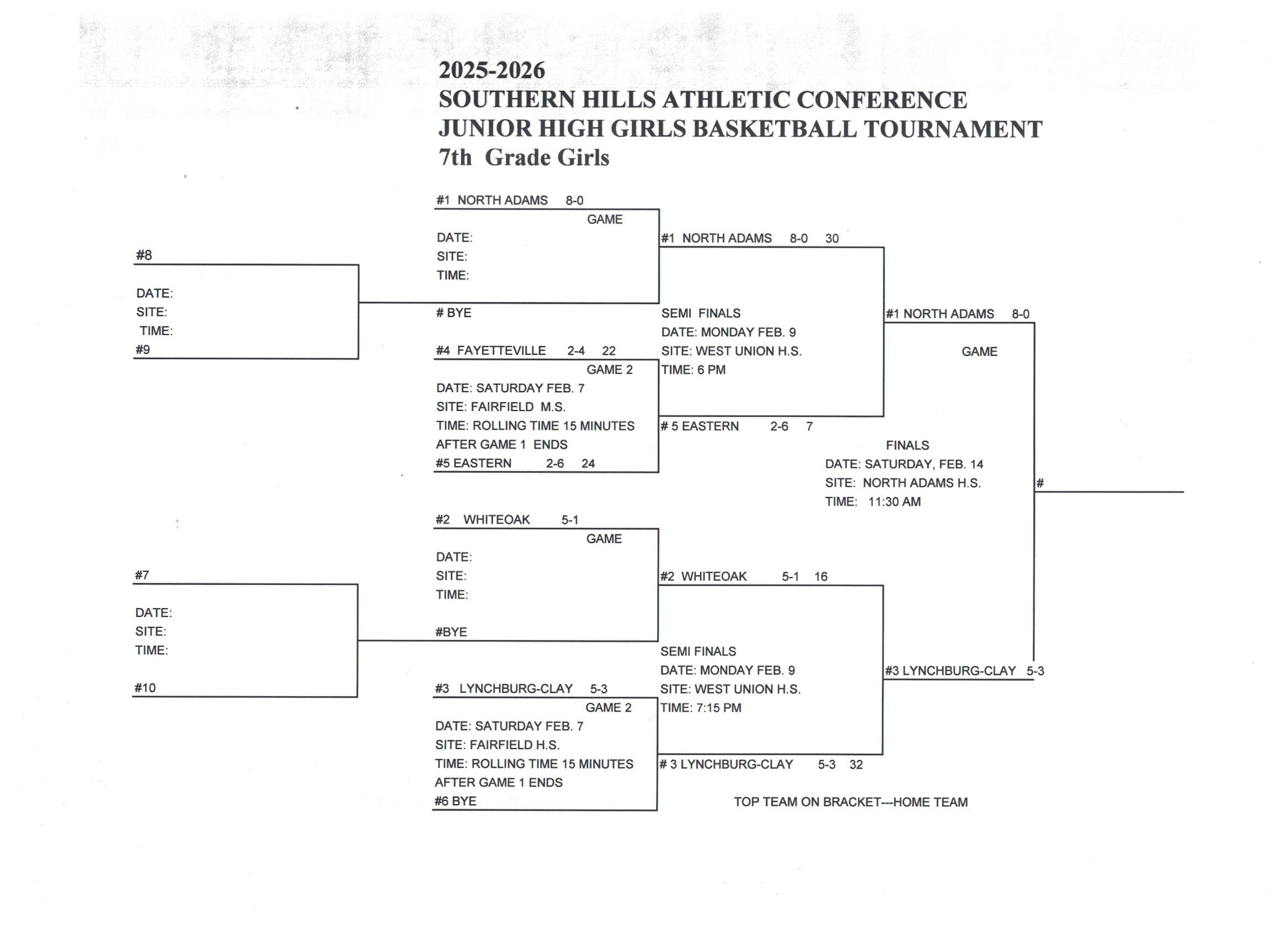 Junior High Girls Basketball Tournament Brackets and Results